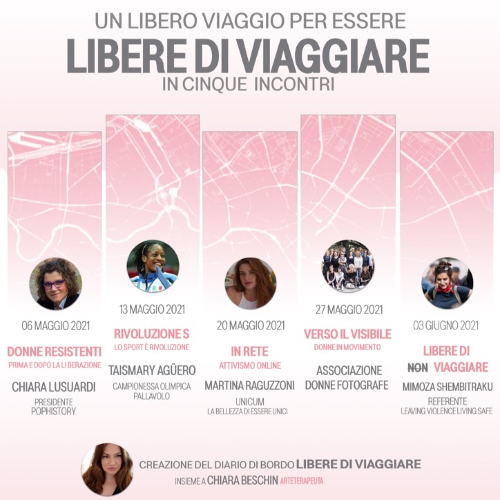 Sarà un viaggio da percorrere insieme. Ci addentreremo nella storia delle donne, nel mondo femminile dello sport, continueremo il nostro cammino entrando nelle trame della rete, vedremo il mondo dal punto di vista di un obiettivo fotografico tutto al femminile, per terminare con un viaggio impossibile di donne a cui era negato il diritto stesso di viaggiare e molto di più.